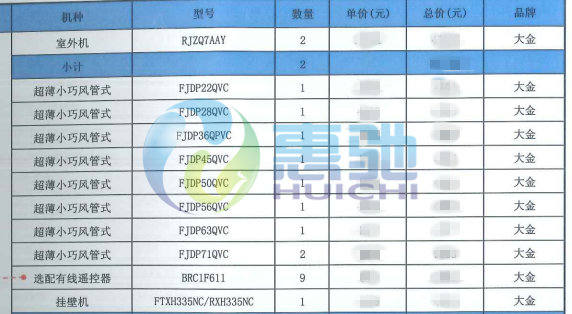 空調(diào)系統(tǒng)技術(shù)配置表