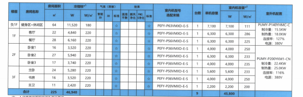 三菱機電中央空調系統技術配置表