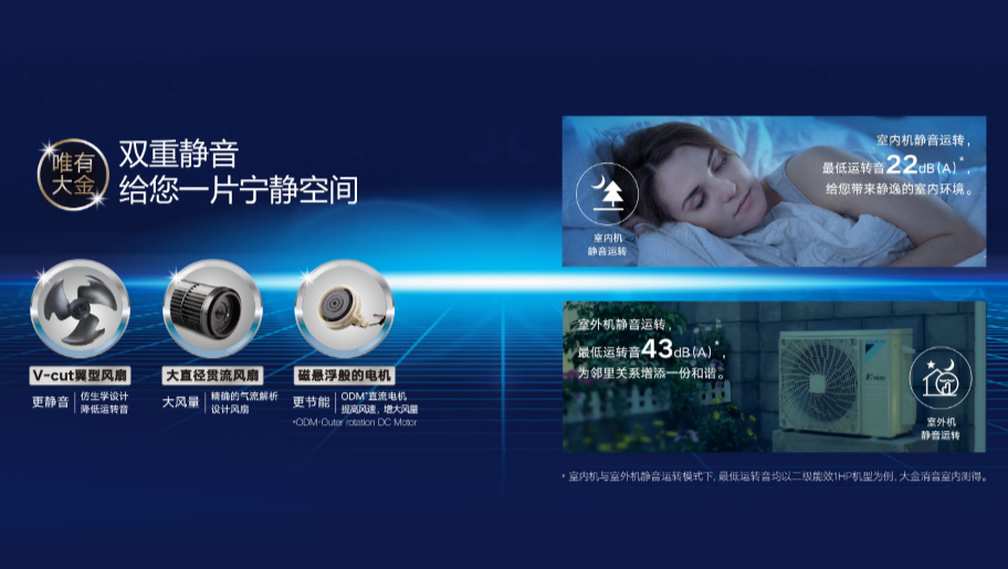 通過Outer rotation DC Motor直流電機,源源不斷地為風扇提供高速運轉的強勁動力,最大程度避免了機械摩擦,使室內機風扇可以像磁懸浮列車一樣高速、平穩(wěn)的運行。
